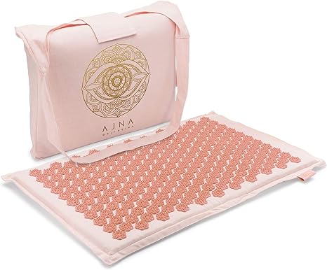 ajna acupressure mat for massage natural organic linen cotton acupuncture mat with bag back pain relief neck pain relief stress reliever reflexology sciatica and trigger point sherbert amazon sg health