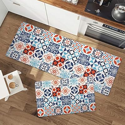 seavish anti fatigue kitchen floor mat set blue tribal boho 2 piece 18 x 29 18 x 47 non slip rubber backing kitchen rugs set waterproof oil proof pvc leather heavy duty standing mats