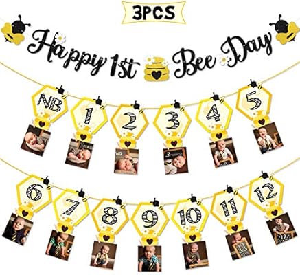3pcs happy bee day party decorations bumble honey bee 1st birthday baby photo banner for newborn to 12 months monthly milestone photograph bunting garland first birthday celebration decorations amazon com au toys games