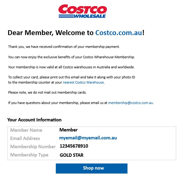 i did not receive my confirmation email costco australia