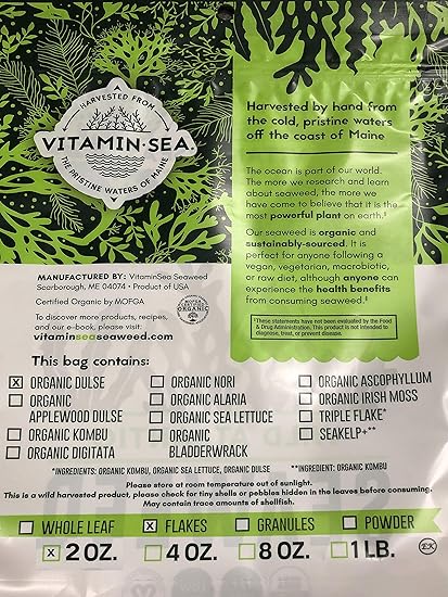 vitaminsea organic dulse flakes seaweed 4 oz 112 g maine coast usda vegan certified kosher