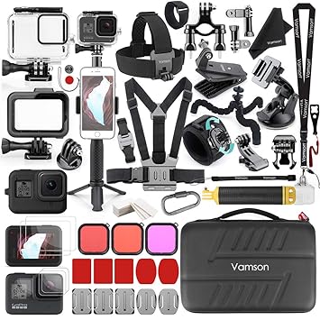 buy vamson 64 in 1 accessories kit for gopro hero 8 black waterproof housing case filter silicone protector frame lens screen tempered glass head chest strap bike car mount floating bundle set kit avs13