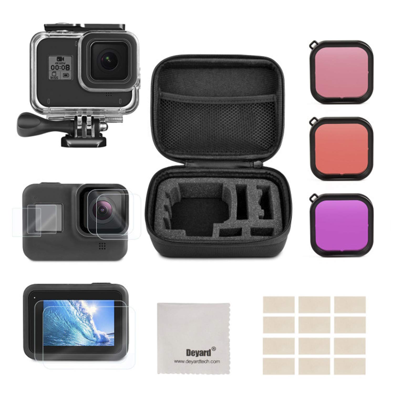 deyard accessories kit for gopro hero 8 black with shockproof small case waterproof case tempered glass screen protector silicone cover lens filters anti fog inserts bundle for gopro