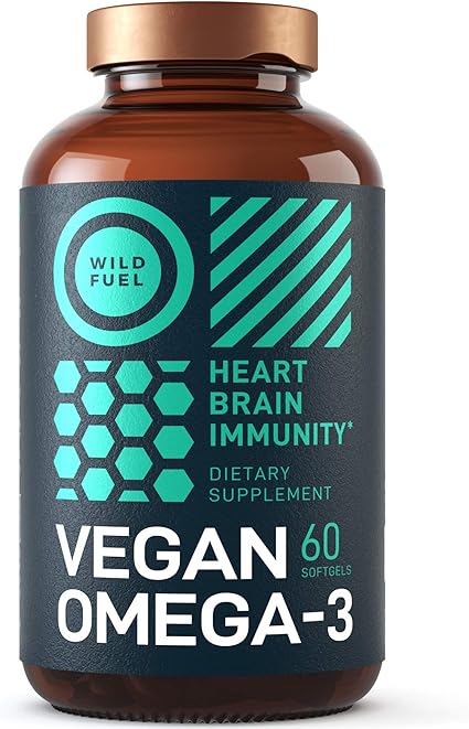 amazon com vegan omega 3 supplement wild fuel algae omega 3 vegan dha and epa fatty acids fishless cruelty free burpless tasteless heart brain joints and immunity support 60 softgels health personal care