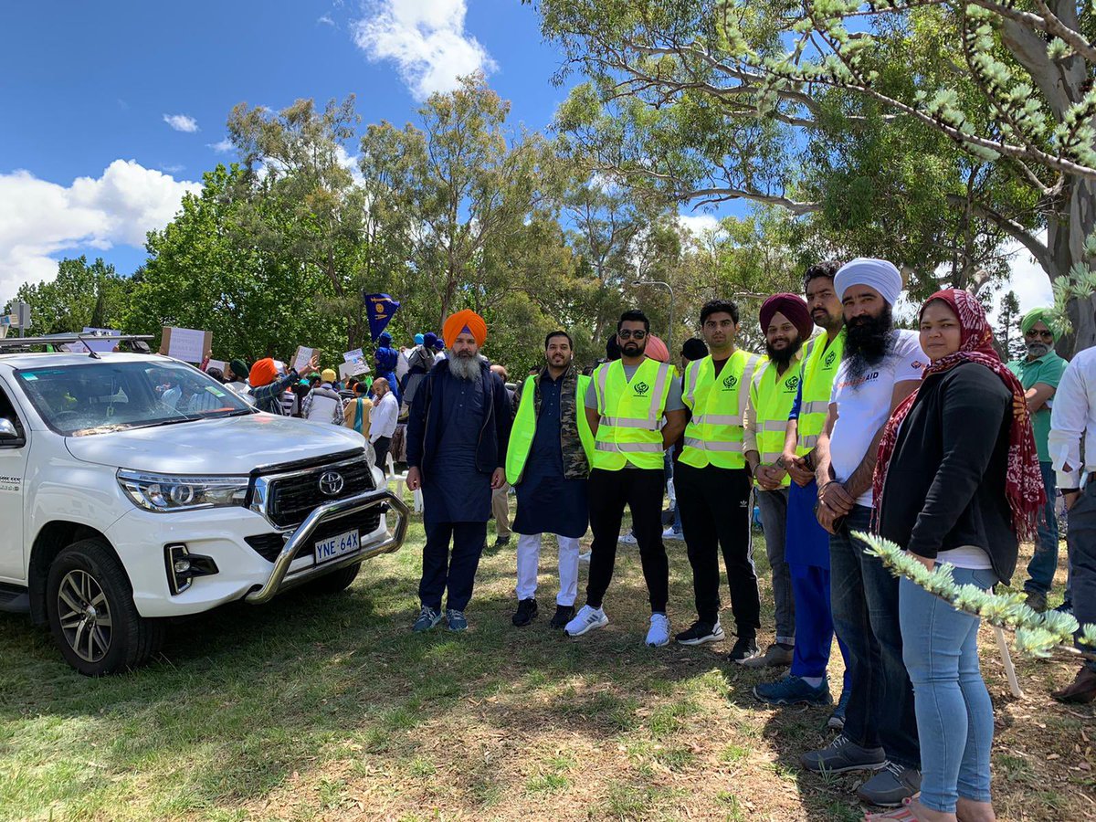 khalsa aid on twitter our khalsa aid australia khalsaaid au volunteers distributed water masks sanitizers and fruit to the protesters who were protesting about farmerbill2020 in sydney https t co zbmdanylty