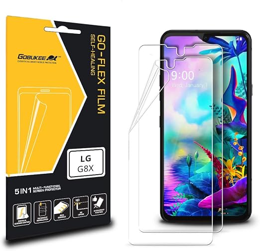 amazon com 2 pack gobukee for lg g8x thinq screen protector perfect fit films for dual screen easy installation anti shock go flex tpu film for lg g8x thinq