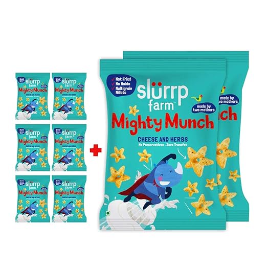 slurrp farm tasty mighty munch cheese and herbs healthy no maida not fried snack for kids 20g pack of 8 amazon in grocery gourmet foods