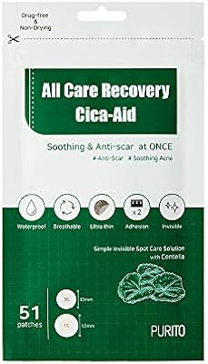 purito all care recovery cica aid 51 patches blemish spot acne pimple spot treatment hydrocolloid dots acne patch pimple master absorbing cover centella invisible healing patch non drying amazon com au beauty