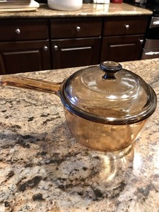 vintage corning ware pyrex vision visions visionware amber all glass 1 quart 1 litre 6 inch saucepan with built in pour spout cover lid made in usa saucepans amazon com au