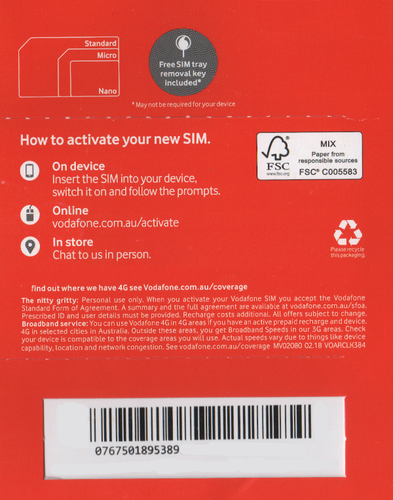vodafone australia prepaid sim card simcard sg