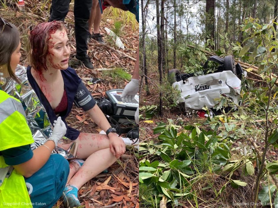 queensland p plater left bloodied after parasite in allegedly stolen vehicle runs her off the road abc news